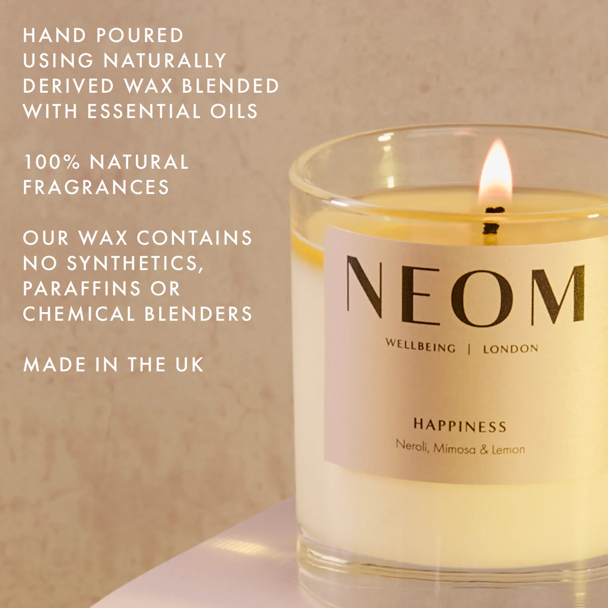 Whatever happiness means to you, we believe creating your own version of happiness is a positive place to start. Our 100% natural Happiness fragrance which intricately blends 10 essential oils including white neroli, woody and powdery mimosa and zingy lemon, has been expertly blended to help boost your mood.